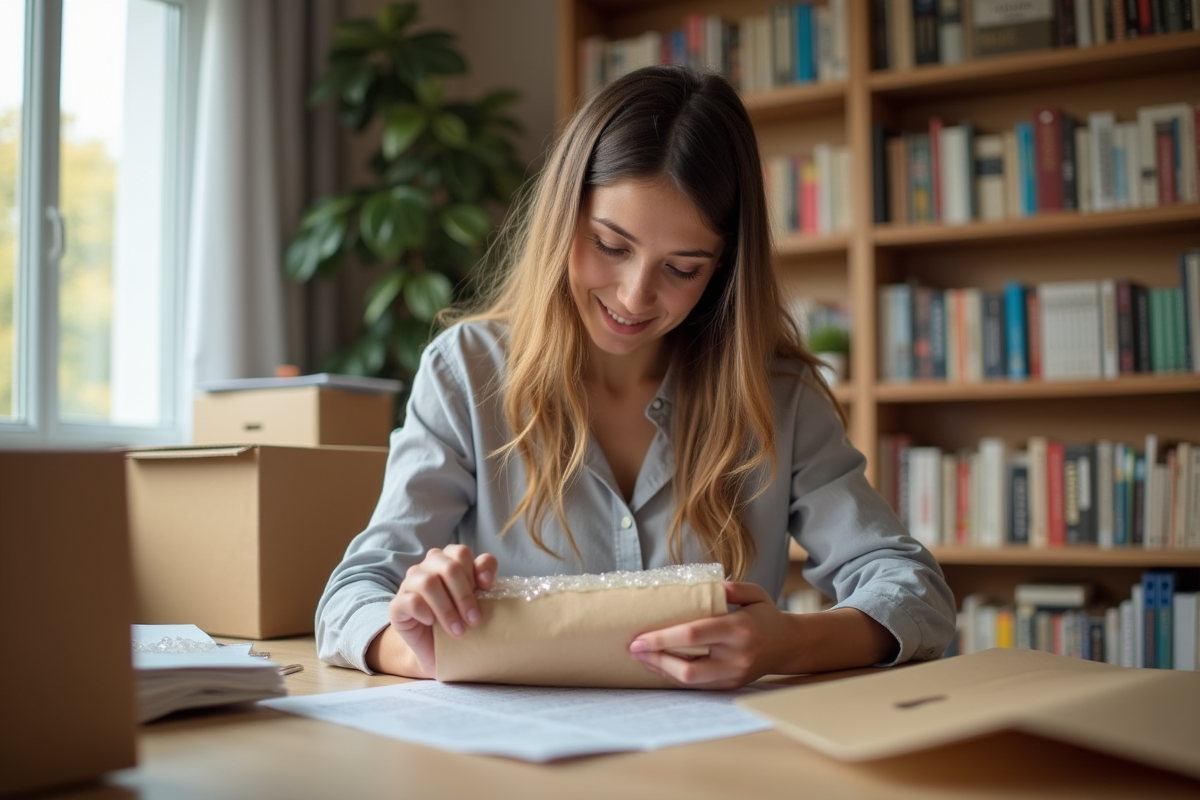 Certaines éditions, anciennes, illustrées, ou à jaquette fragile, méritent une attention particulière. Glissez une feuille de papier de soie entre chaque couverture. La poussière et l’humidité ne franchiront pas cette barrière, et les frottements seront absorbés. Les petits objets fragiles, presse-livres ou bibelots, doivent être emballés séparément, à l’aide de papier bulle, de serviettes ou même de vêtements doux. Fermez chaque carton avec du ruban adhésif large, en renforçant le fond et les côtés pour éviter tout accident.