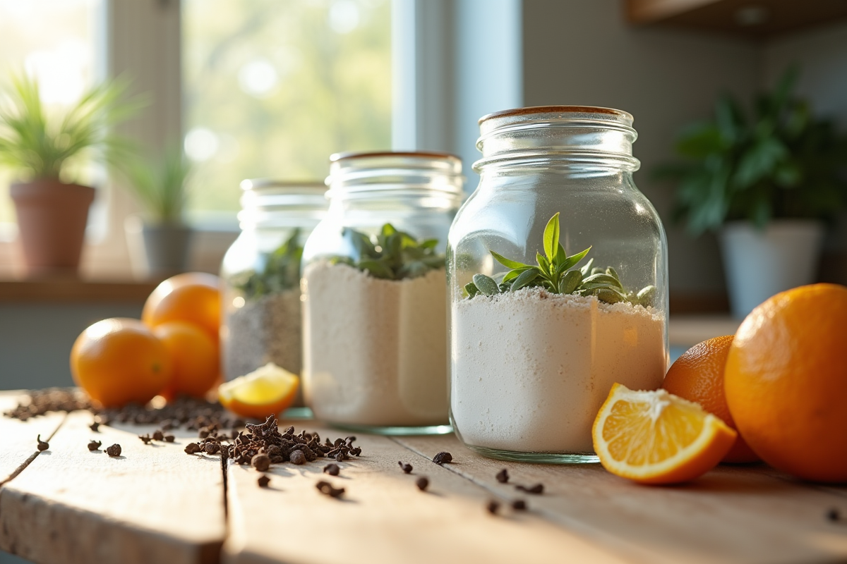 Pensez également à disposer quelques feuilles de laurier ou clous de girofle dans les coins des placards. Leur odeur persistante tient les mites alimentaires à distance. L’association du vinaigre blanc et des huiles essentielles transforme vos rangements en forteresse, sans jamais altérer l’ambiance de votre cuisine.